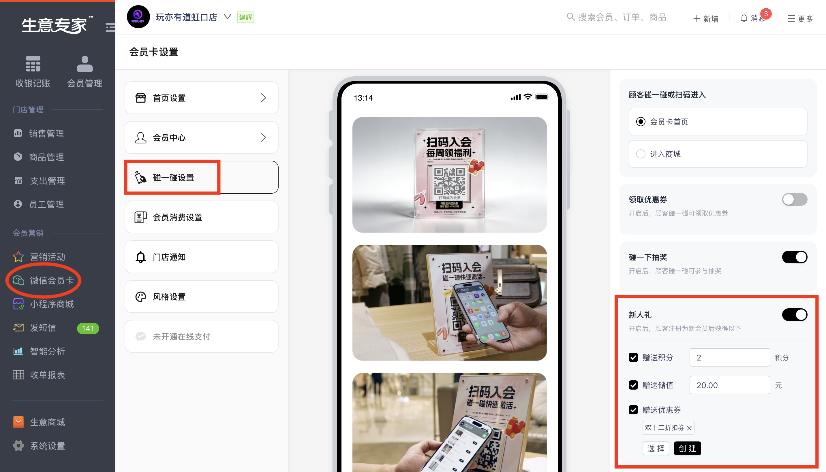 第三步:用碰一碰立牌实现秒加会员