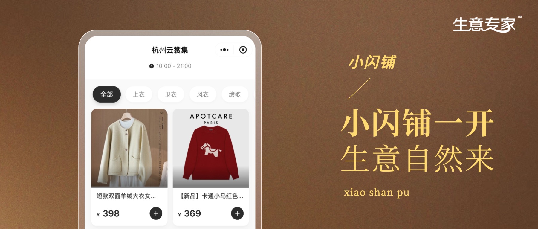 别等了。你的顾客正在手机上等着逛你的店,你的库存正在等着被更多人看见,你的生意值得一个线上新入口。 来加入小闪铺,今天上货,下午就能出单。 打开官网 www.shengyi.ai,10分钟即可开通。不用认证,不用装修,不用学习——只需要你决定:今天,要不要让生意多卖一单?